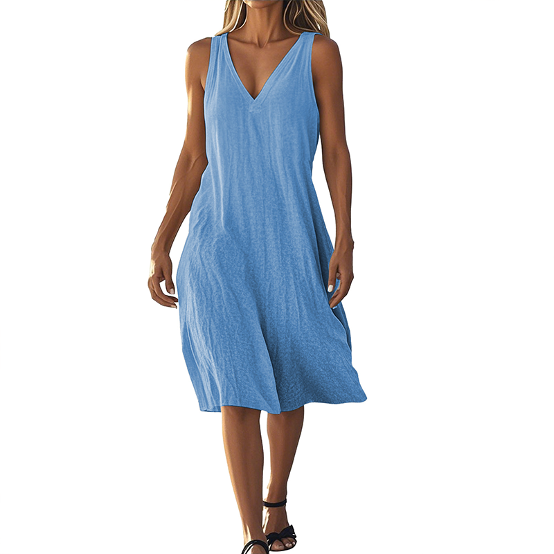 Pochlebna sylwetka w dekolcie w stylu V: Bez rękawów design V-Neck zapewnia elegancki i kobiecy wygląd, jednocześnie zapewniając wygodne zużycie. Dekolt podkreśla naturalny kształt, nie będąc zbyt badanym, więc nadaje się na luźne i lekko ubrane okazje. Luźne krawiectwo zapewnia swobodę ruchu i cały dzień.