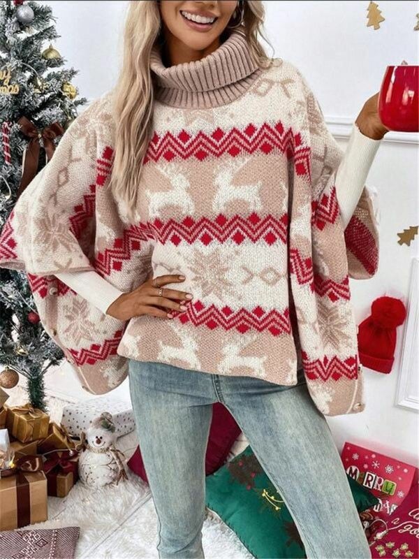 Damski sweter na co dzień z nadrukiem świątecznego łosia